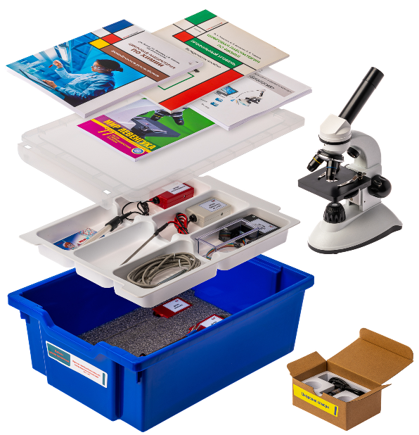 Цифровая лаборатория (за исключением микроскопа, набора препаратов, набора лабораторной оснастки и цифровой видеокамеры) укомплектована в пластиковую систему хранения, которая закрывается прозрачной пластиковой крышкой на защелках для обеспечения наблюдения за содержимым. Комплект оборудования и датчики в системе хранения располагаются на ложементе.