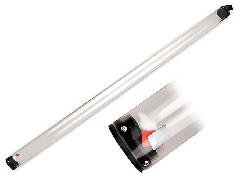 Прибор представляет собой прозрачную цилиндрическую трубку, закрытую с двух сторон пробками, в одной из которых вмонтирован кран для откачки воздуха. На кран надевается толстостенный резиновый шланг от вакуумного насоса. Внутри трубки находятся несколько тел различной массы.