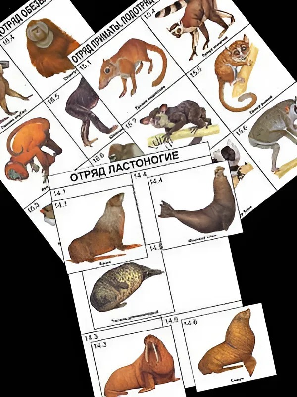 Комплект дидактических карточек: "Систематика и экология млекопитающих" (96 штук, цветные, ламинированные)