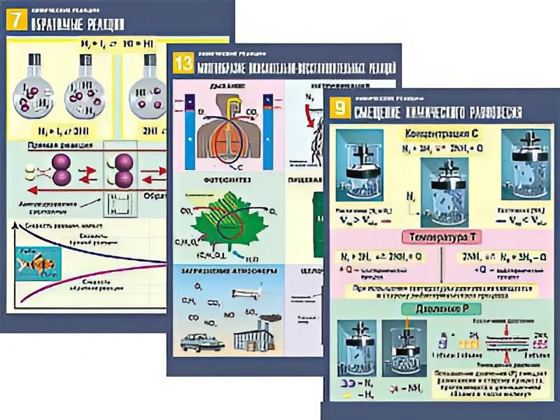 Комплект таблиц по химии демонстрационных "Химические реакции" (14 таблиц, формат А1, ламинированные) - fgospostavki.ru - Красный Сулин