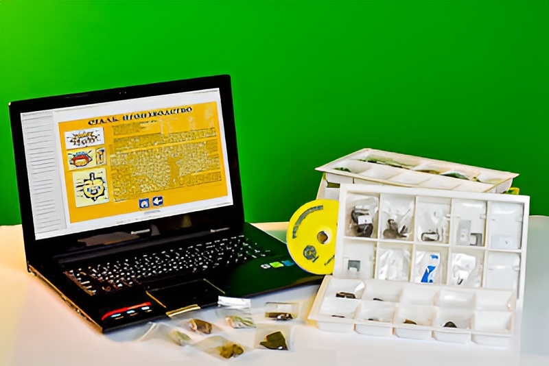 Образцы пронумерованы и упакованы в коробку с ячейками. Комплектуются ламинированными вкладышами со схемами производства чугуна и стали.