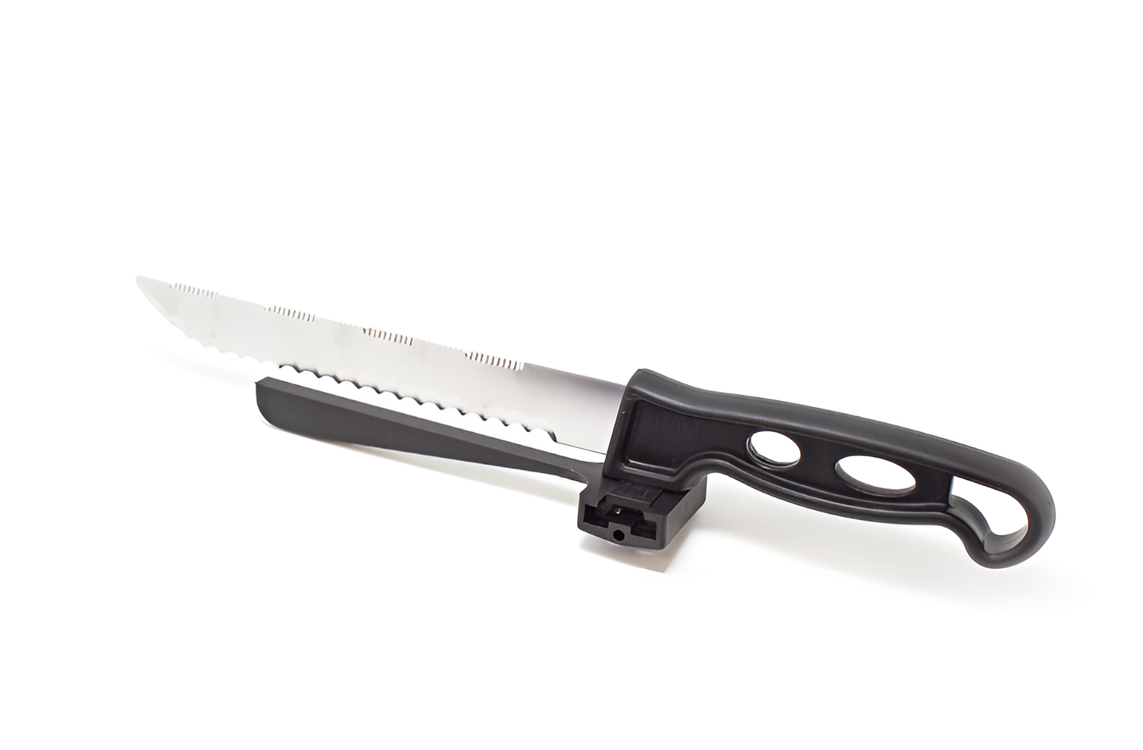 Конструкция ножа позволяет нарезать продукты одинаковыми ровными ломтиками. Толщину нарезки (до 2см) задаёт переустанавливающийся ограничитель.