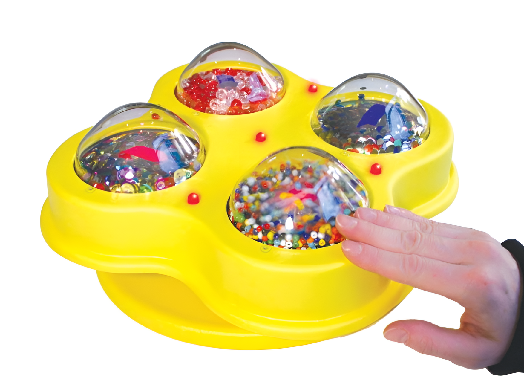 При легком нажатии на любом участке центра, активируется один из четырех куполов — раздается музыка или загораются огни, разноцветные блестки и бисер начинают вращаться. В то же время, вы можете ощутить легкую вибрацию.