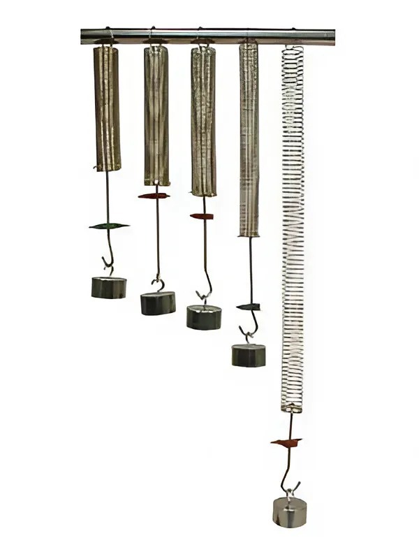 Все пружины в верхней части имеют кольцо для подвешивания на штативе. К нижней части пружин прикреплены одинакового размера проволочные крючки. Крючки оснащены стрелочными указателями, которые могут перемещаться вдоль проволоки крючка.