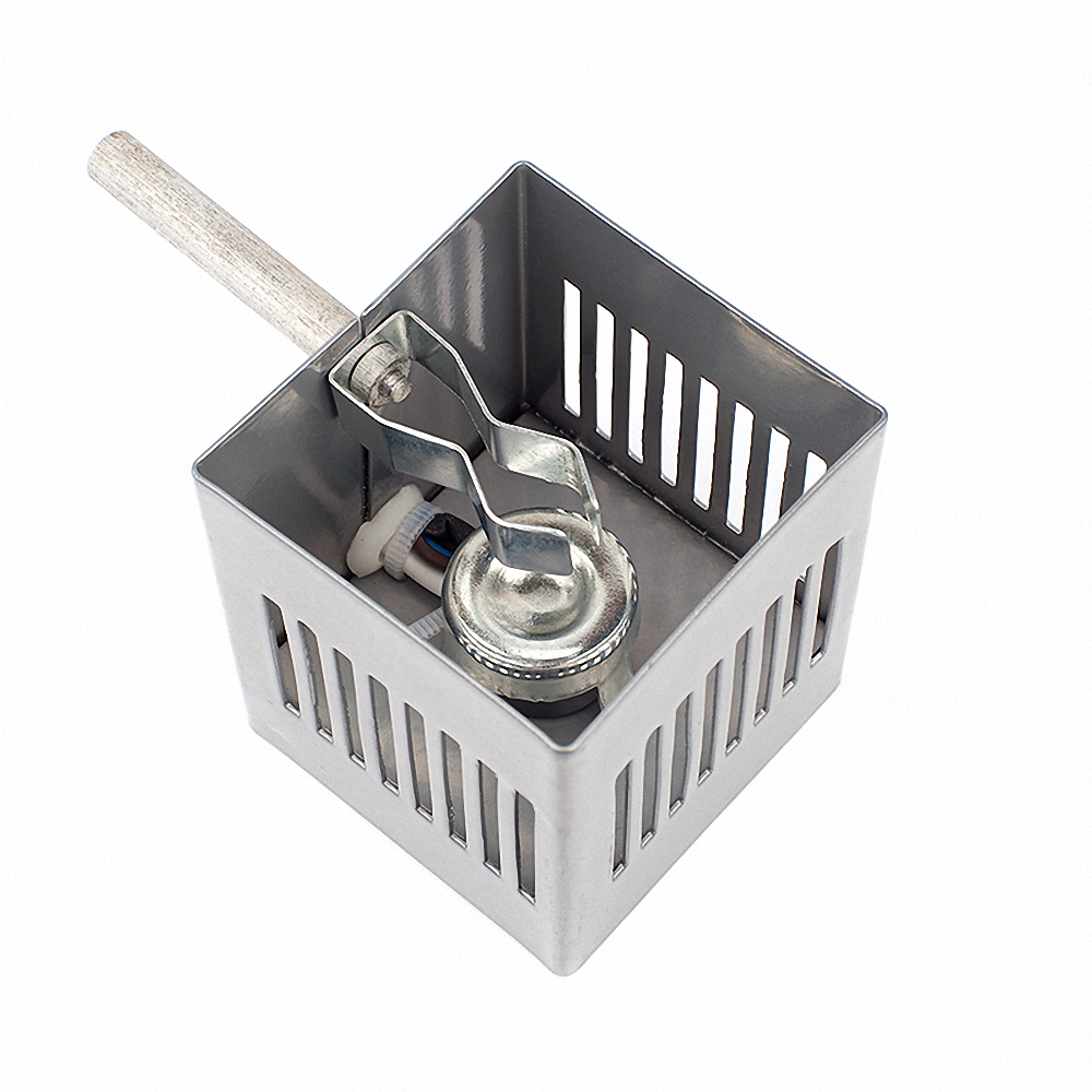 Нагреватель состоит из пластмассовых основания и кольца, скрепленных между собой тремя стяжками. В круговой прорези основания и кольца вставлен защитный экран, выполненный в виде металлического цилиндра. Защитный экран предотвращает от случайного прикосновения к нагретым поверхностям изделия.
