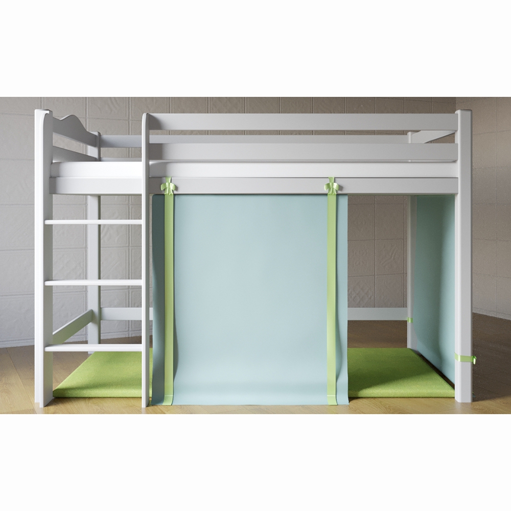 Конструкция кровати надежна и прочна – это гарантирует безопасную эксплуатацию: лестница расположена под небольшим наклоном, а ступеньки надежно закреплены; форма предотвращает соскальзывание ноги ребенка. Имеющиеся бортики предупредят падение. Кровать также оборудована отдельным местом, которое может стать домиком для игр или настоящим убежищем для малыша – стоит лишь добавить несколько деталей (занавески, гирлянду внутри), проявив свою фантазию. Или там можно разместить стеллажи с игрушками, сэкономив пространство в комнате. Белый цвет конструкции позволяет оборудовать ею комнату и мальчика, и девочки. Кровать-чердак предназначена использования детьми от 3 до 10 лет.