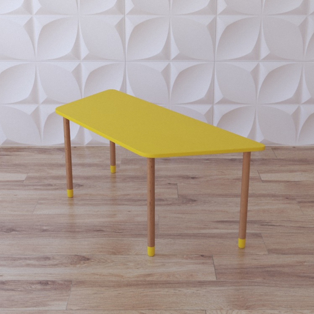 Детский деревянный стол “Яркая трапеция” окрашен в спокойные цвета, которые не отвлекают от учёбы и имеет максимально простую конструкцию – состоит из 4 ножек и столешницы трапециевидной формы; необходим для обустройства индивидуальными учебными местами групп в ДОУ, начальных школ и школ искусств. Группа из таких столиков не только обеспечит учебными местами учреждение, но и украсит его, придав интерьеру законченный вид благодаря универсальному виду каждого из элементов группы.