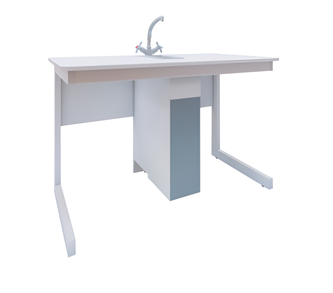 В центральной части стола располагается мойка, к мойке осуществляется подвод воды через смеситель. Смеситель - специальный предназначенны для работы с агрессивными веществами.