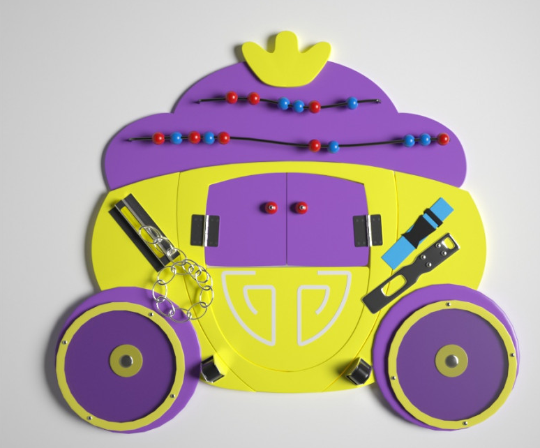 Яркий, а главное, необычный дизайн кареты привлекает внимание детей разного возраста, с которым можно и нужно играть в разносторонние игры. Кроме интересного дизайна, эта доска несет в себе огромное количество полезных качеств, которые позволяют детским садам, центрам и школам включать данную игру в программы работы с детьми. Яркость бизиборда, а также разнообразие элементов позволяет увлечь ребенка почти сразу. Деревянная доска небольшого размера включает в себе основные элементы, которые работаю во благо ребенка, развивая умственную активность, улучшая память, логику и конечно мелкую моторику. Все элементы выполнены качественно, что позволяет ребенку играть с бизибордом в одиночестве.