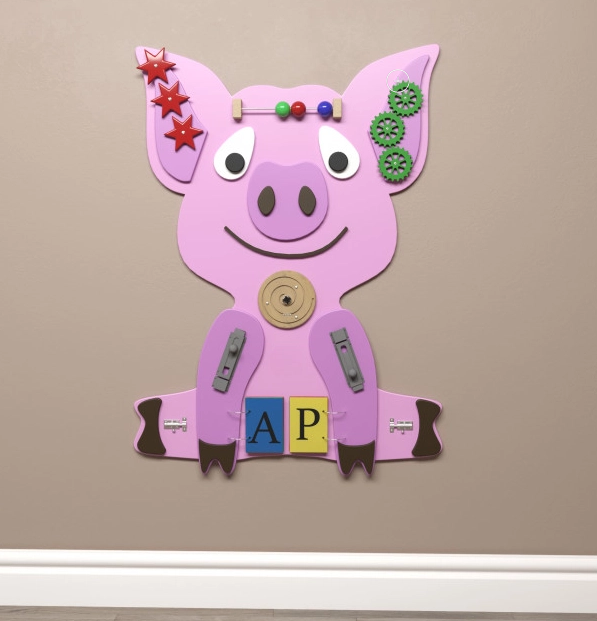 От мелкой моторика рук зависит развитие речи, чем быстрее и правильнее идет развитие, тем лучше малыш сможет держать в дальнейшем столовые предметы или письменные принадлежности. Малыш сможет фантазировать и проигрывать сценарии, отрабатывать новые навыки. Ребёнок не только играет, а еще тренирует мышцы руки и пальцев, а у мамы появится свободное время. Бизиборд в виде поросенка поможет детям быть самостоятельными.