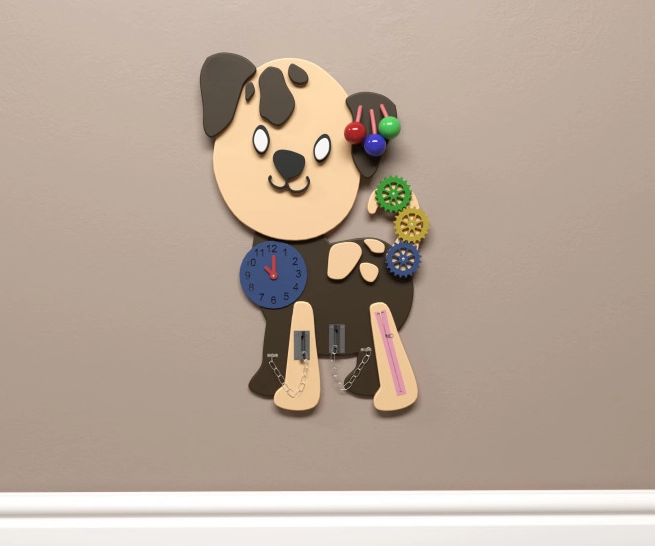 • Покажите ребенку иные элементы доски, например, как работают шестерни. Так малыш разработает моторику рук и кистей, что будет отличной подготовкой перед школой.