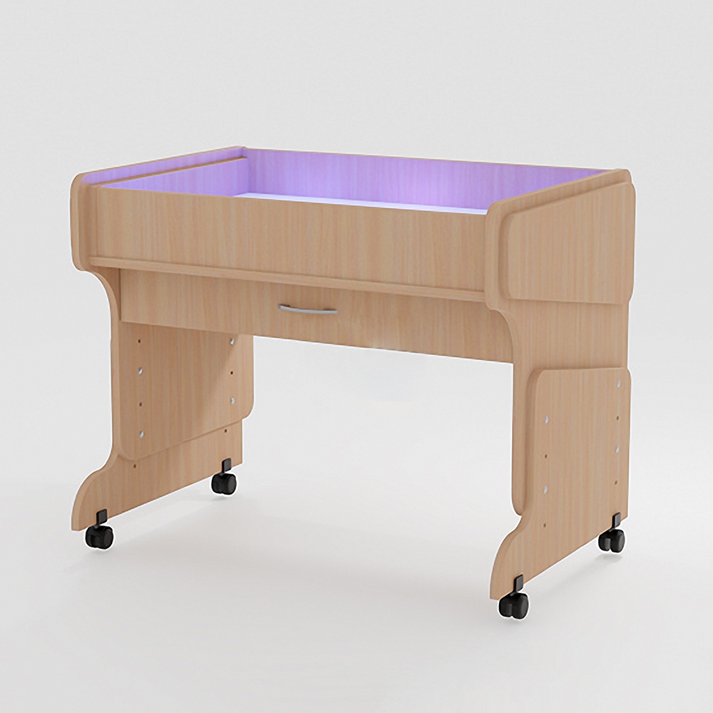 Парта совмещает в себе место для работы и песочный комплекс для игр и творчества, куда встроена подсветка RGB. При использовании игровой части можно применять не только кварцевый песок, но и кинетический.
