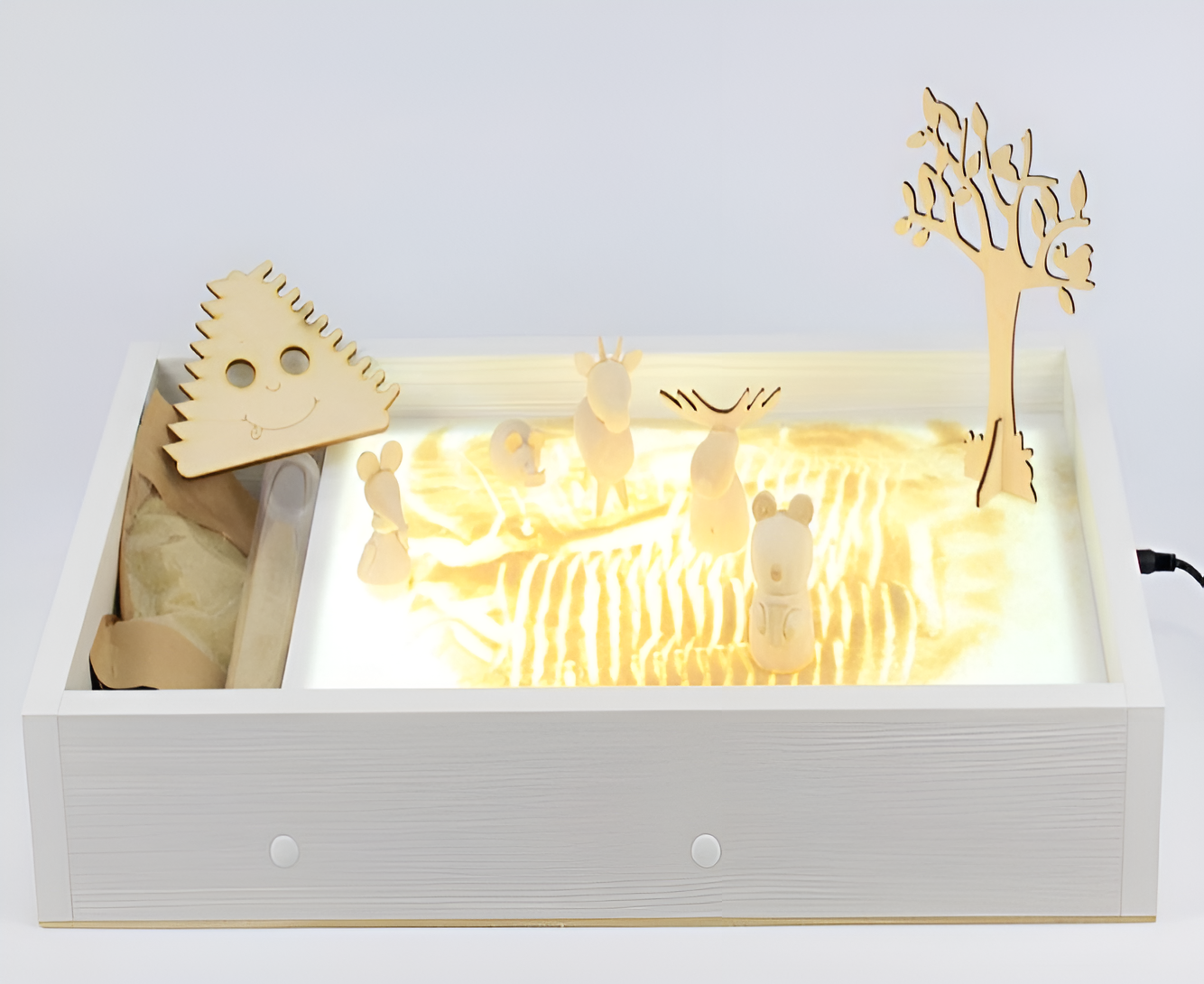 Компактный и функциональный световой планшет для рисования песком. Способствует развитию мелкой и крупной моторики, творческих способностей.