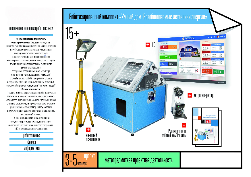 Главная Каталог Образовательные модули конструирования, проектирования и робототехники Робототехнический комплекс «Возобновляемые источники энергии»
