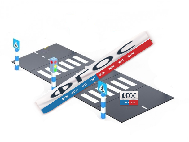 Этот игровой комплекс имеет два пешеходных перехода и четыре знака «Пешеходного перехода».