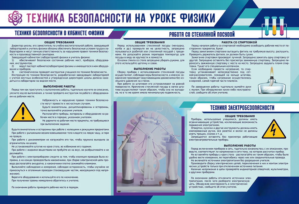 Главная Каталог Стенды Кабинеты Физика Стенд-уголок "Техника безопасности на уроках физики"