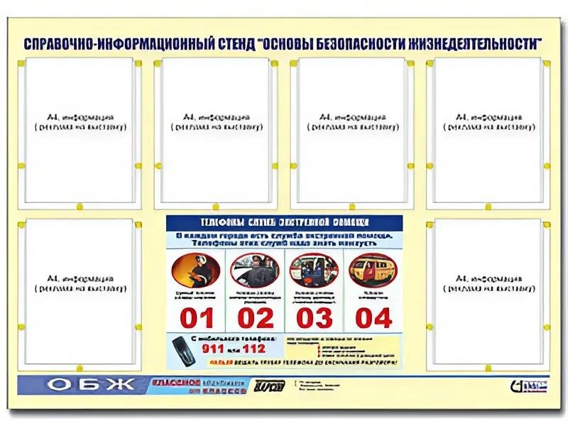 Стенд информационный "Основы безопасности жизнедеятельности" (80*110, 6 карманов)