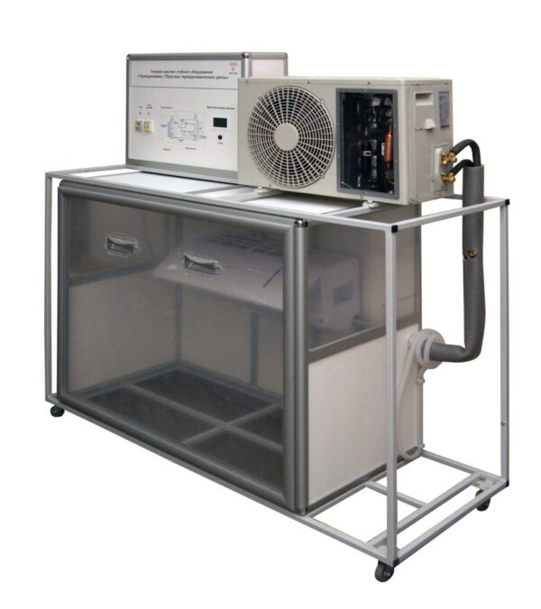 Рамное основание имеет поворотные колесные опоры с тормозами. На рамном основании монтируется современная сплит-система. При этом внутренний блок сплит-системы размещается в кожухе, который моделирует внутренний объем помещения.